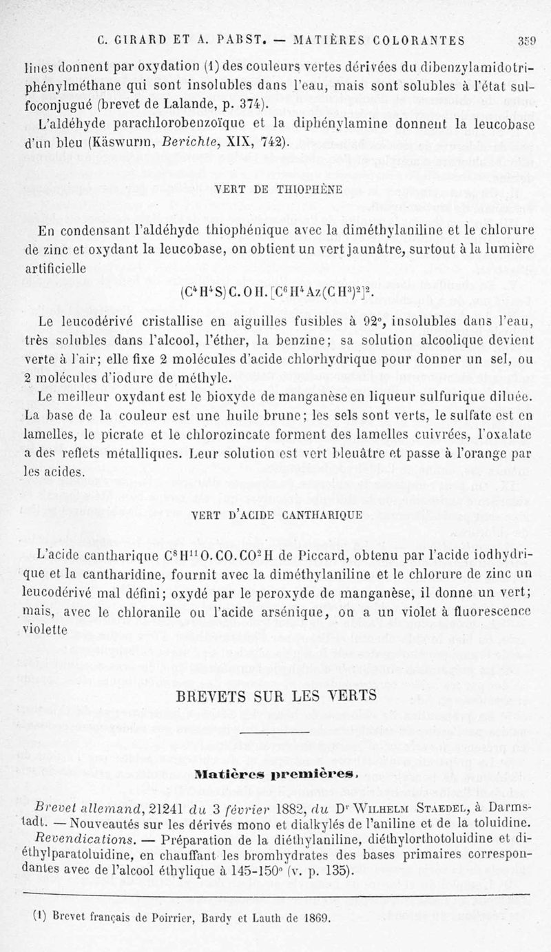 Encyclopédie chimique.Tome X.- Applications de chimie organique. Matière colorantes : série aromatique et ses applications industrielles, par MM. Ch. Girard et A. Pabst.