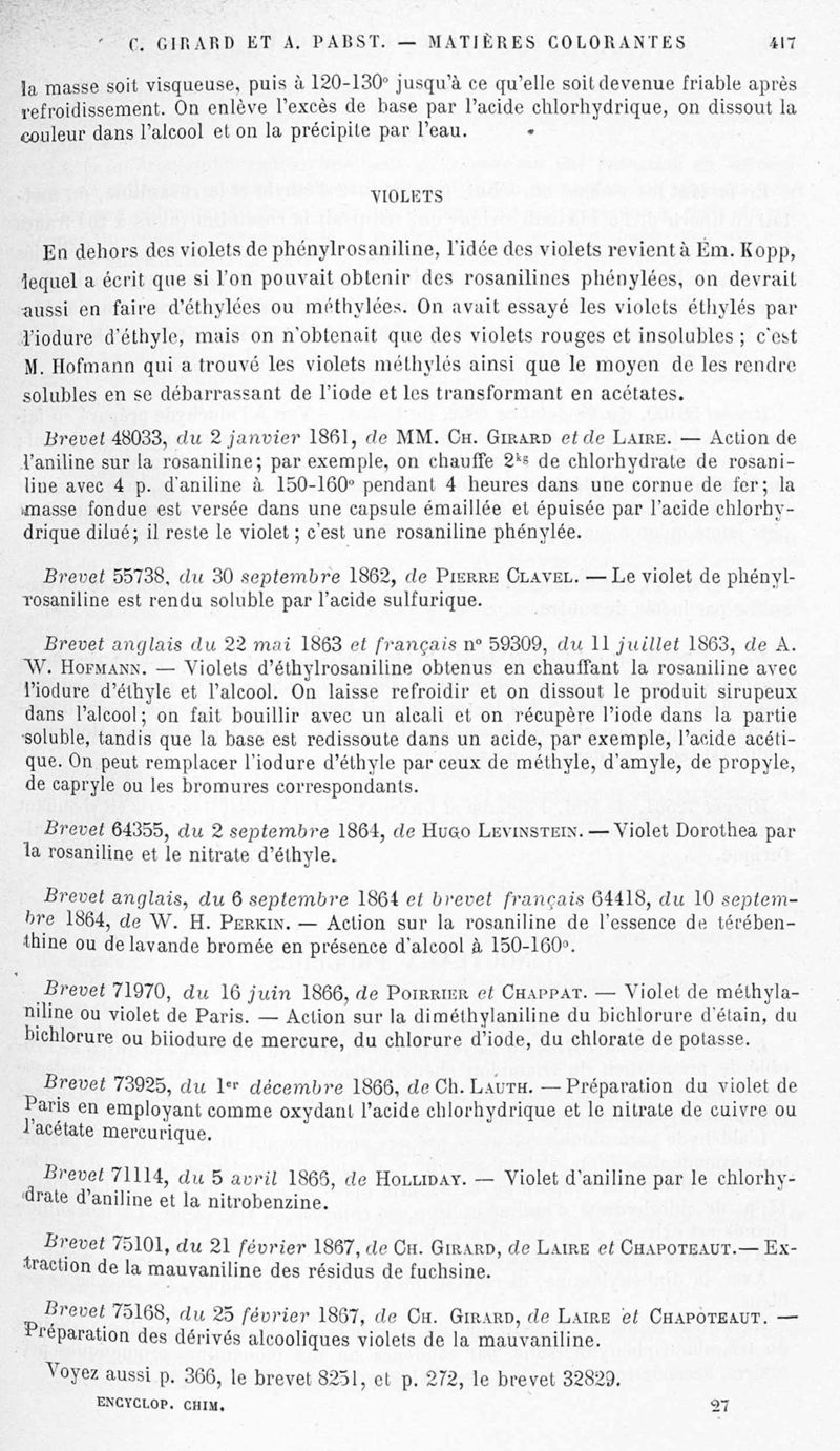 Encyclopédie chimique.Tome X.- Applications de chimie organique. Matière colorantes : série aromatique et ses applications industrielles, par MM. Ch. Girard et A. Pabst.