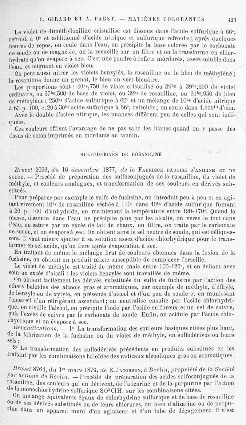 Encyclopédie chimique.Tome X.- Applications de chimie organique. Matière colorantes : série aromatique et ses applications industrielles, par MM. Ch. Girard et A. Pabst.