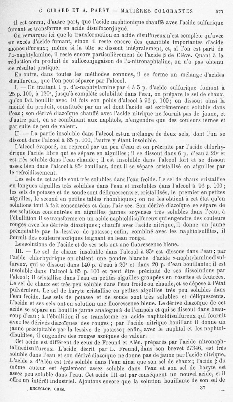 Encyclopédie chimique.Tome X.- Applications de chimie organique. Matière colorantes : série aromatique et ses applications industrielles, par MM. Ch. Girard et A. Pabst.