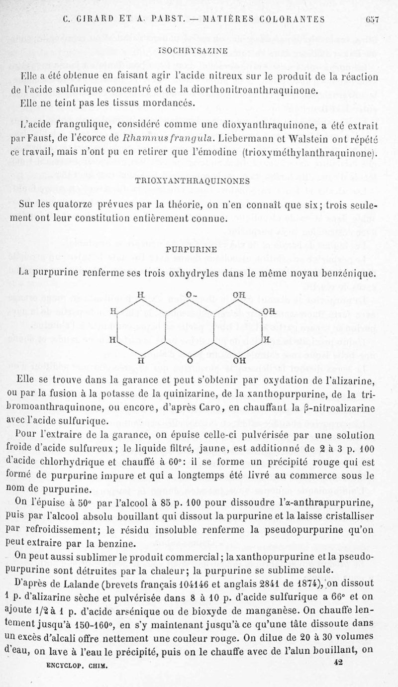 Encyclopédie chimique.Tome X.- Applications de chimie organique. Matière colorantes : série aromatique et ses applications industrielles, par MM. Ch. Girard et A. Pabst.