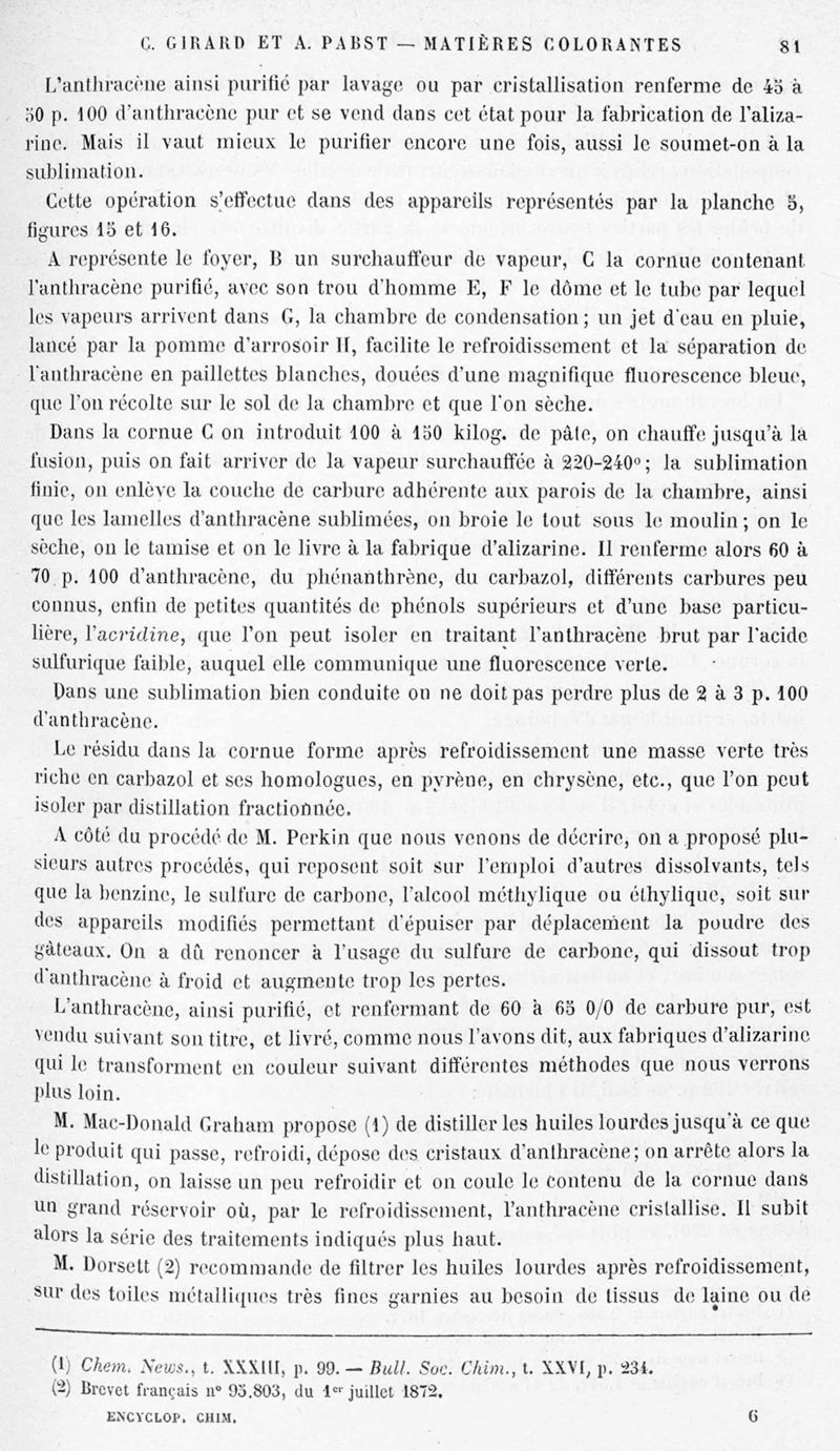 Encyclopédie chimique.Tome X.- Applications de chimie organique. Matière colorantes : série aromatique et ses applications industrielles, par MM. Ch. Girard et A. Pabst.