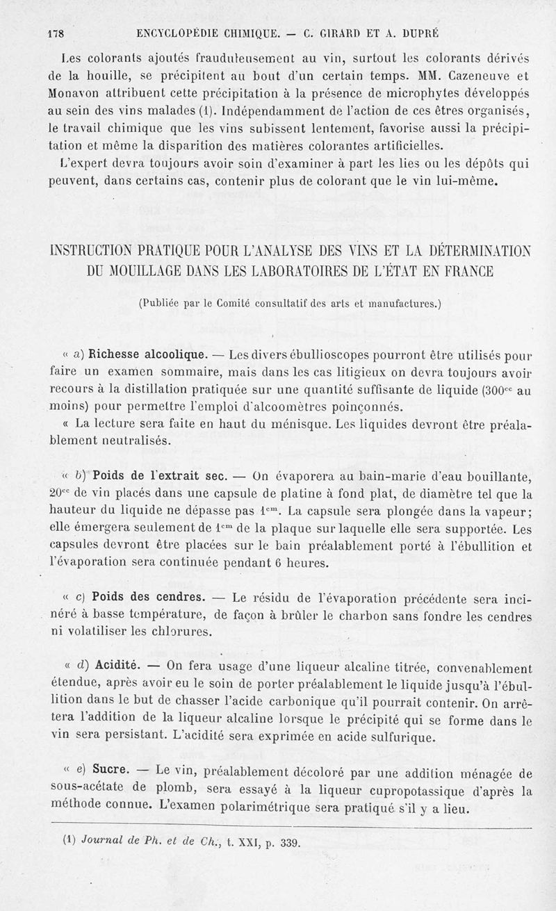 Encyclopédie chimique.Tome X.- Applications de chimie organique. Analyse des matières alimentaieres et recherche de leurs falsifications, par MM. Ch. Girard et A. Dupré.