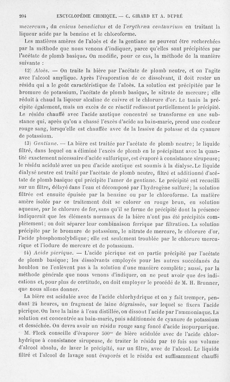 Encyclopédie chimique.Tome X.- Applications de chimie organique. Analyse des matières alimentaieres et recherche de leurs falsifications, par MM. Ch. Girard et A. Dupré.