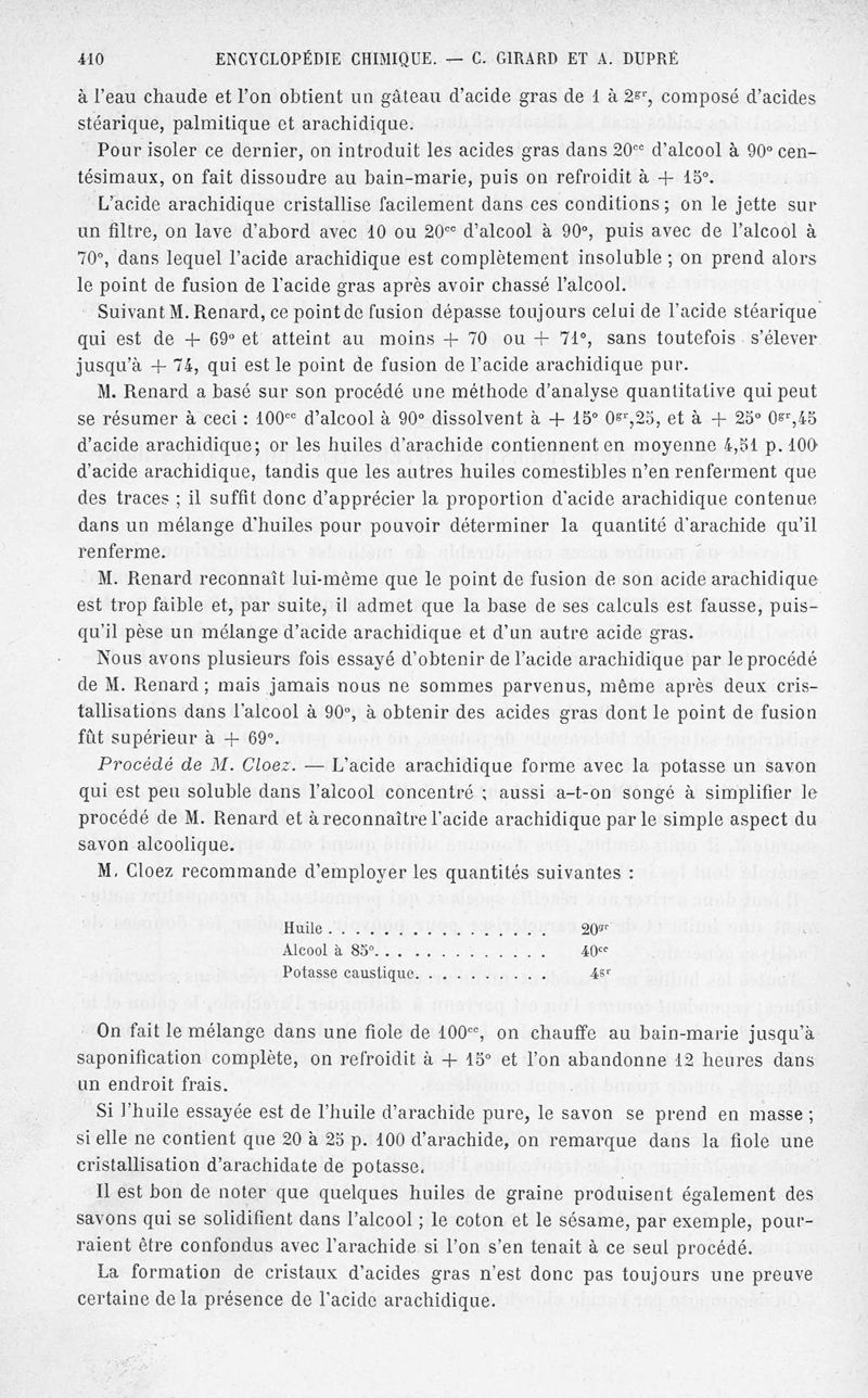 Encyclopédie chimique.Tome X.- Applications de chimie organique. Analyse des matières alimentaieres et recherche de leurs falsifications, par MM. Ch. Girard et A. Dupré.