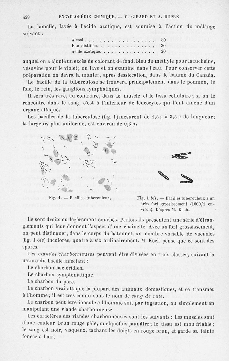 Encyclopédie chimique.Tome X.- Applications de chimie organique. Analyse des matières alimentaieres et recherche de leurs falsifications, par MM. Ch. Girard et A. Dupré.