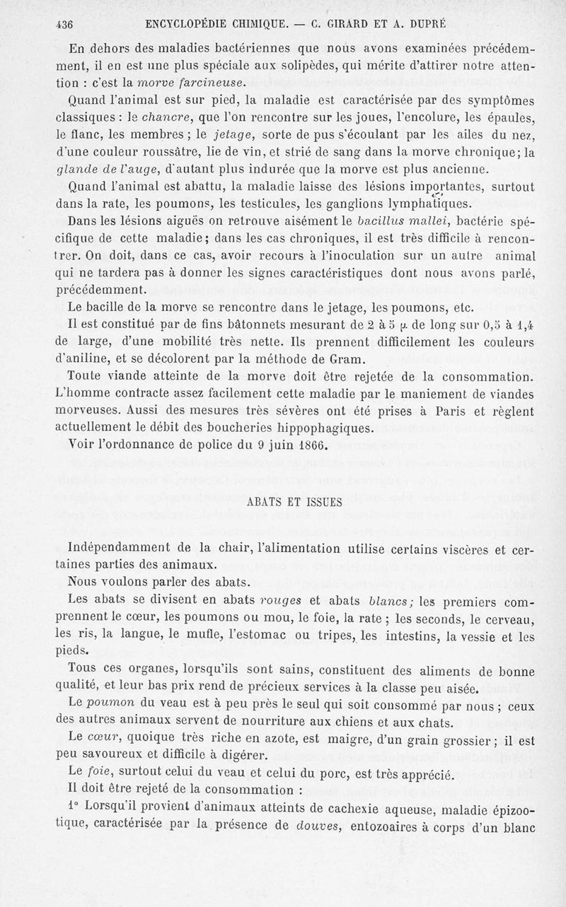Encyclopédie chimique.Tome X.- Applications de chimie organique. Analyse des matières alimentaieres et recherche de leurs falsifications, par MM. Ch. Girard et A. Dupré.