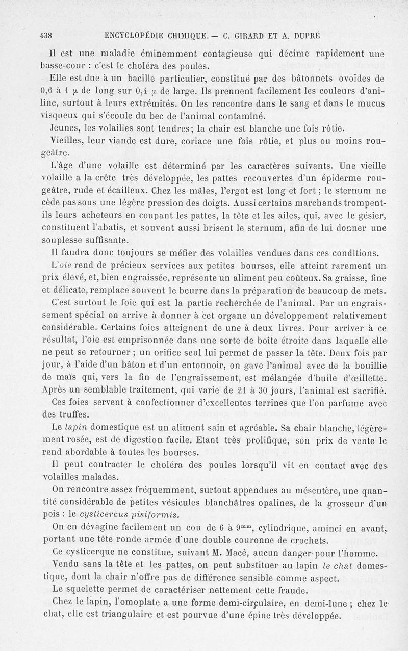 Encyclopédie chimique.Tome X.- Applications de chimie organique. Analyse des matières alimentaieres et recherche de leurs falsifications, par MM. Ch. Girard et A. Dupré.
