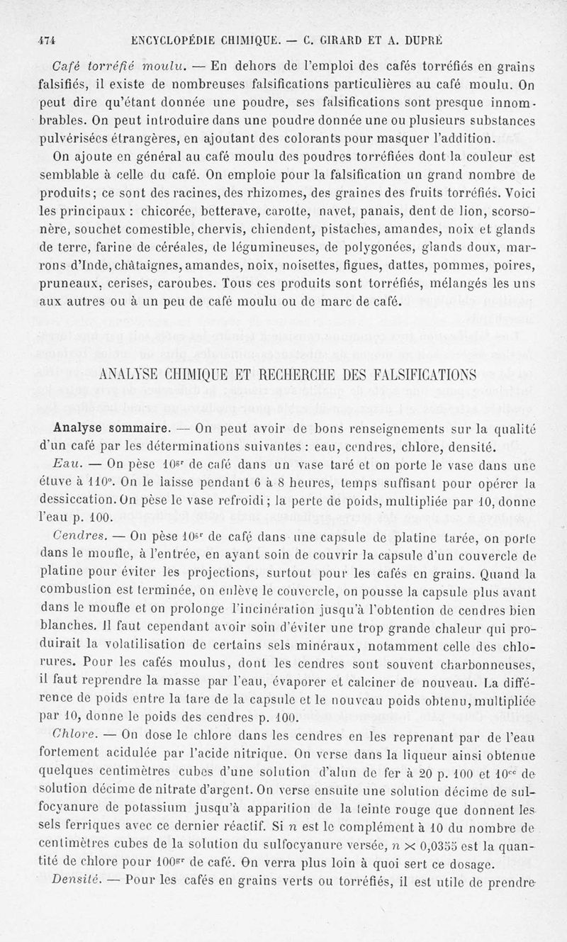 Encyclopédie chimique.Tome X.- Applications de chimie organique. Analyse des matières alimentaieres et recherche de leurs falsifications, par MM. Ch. Girard et A. Dupré.