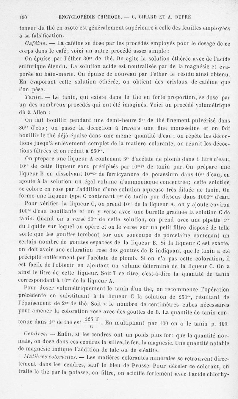 Encyclopédie chimique.Tome X.- Applications de chimie organique. Analyse des matières alimentaieres et recherche de leurs falsifications, par MM. Ch. Girard et A. Dupré.