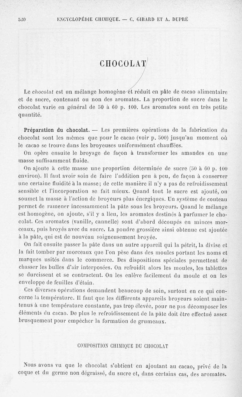 Encyclopédie chimique.Tome X.- Applications de chimie organique. Analyse des matières alimentaieres et recherche de leurs falsifications, par MM. Ch. Girard et A. Dupré.
