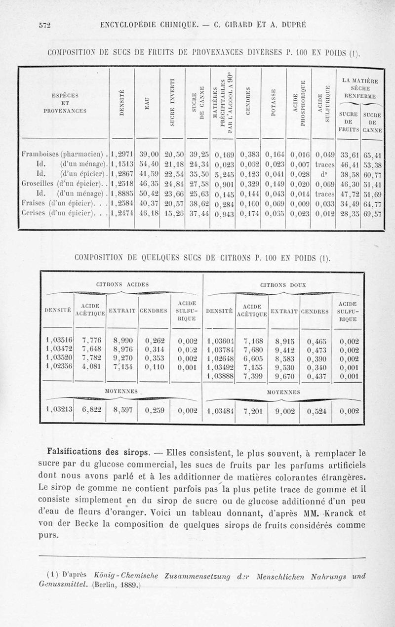 Encyclopédie chimique.Tome X.- Applications de chimie organique. Analyse des matières alimentaieres et recherche de leurs falsifications, par MM. Ch. Girard et A. Dupré.