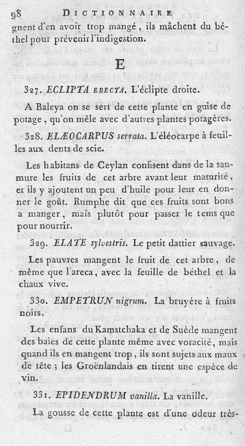 Dictionnaire des plantes alimentaires qui peuvent servir de nourriture, de boisson aux différens peuples de la terre... ou les arts du boulanger, du pâtissier, du vermicelier, du confiseur, du distillateur-liqueriste, du cuisinier, réunis dans cet ouvrage, utile aux cultivateurs et aux personnes qui habitent la campagne. Tome premier