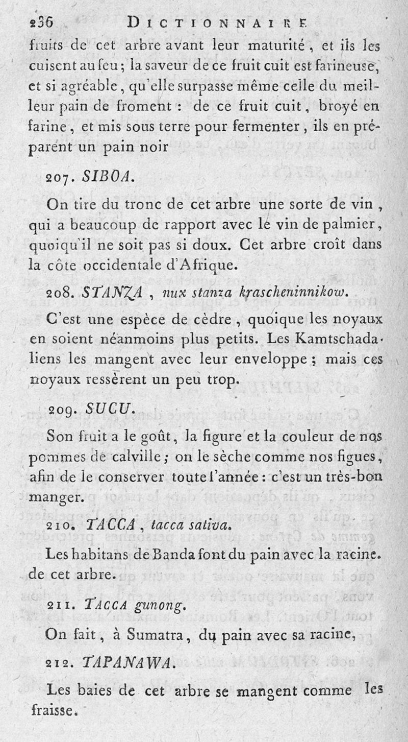 Dictionnaire des plantes alimentaires qui peuvent servir de nourriture, de boisson aux différens peuples de la terre... ou les arts du boulanger, du pâtissier, du vermicelier, du confiseur, du distillateur-liqueriste, du cuisinier, réunis dans cet ouvrage, utile aux cultivateurs et aux personnes qui habitent la campagne. Tome premier