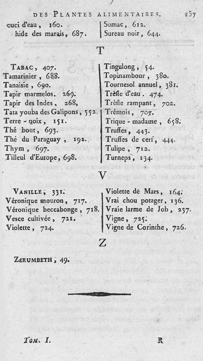 Dictionnaire des plantes alimentaires qui peuvent servir de nourriture, de boisson aux différens peuples de la terre... ou les arts du boulanger, du pâtissier, du vermicelier, du confiseur, du distillateur-liqueriste, du cuisinier, réunis dans cet ouvrage, utile aux cultivateurs et aux personnes qui habitent la campagne. Tome premier