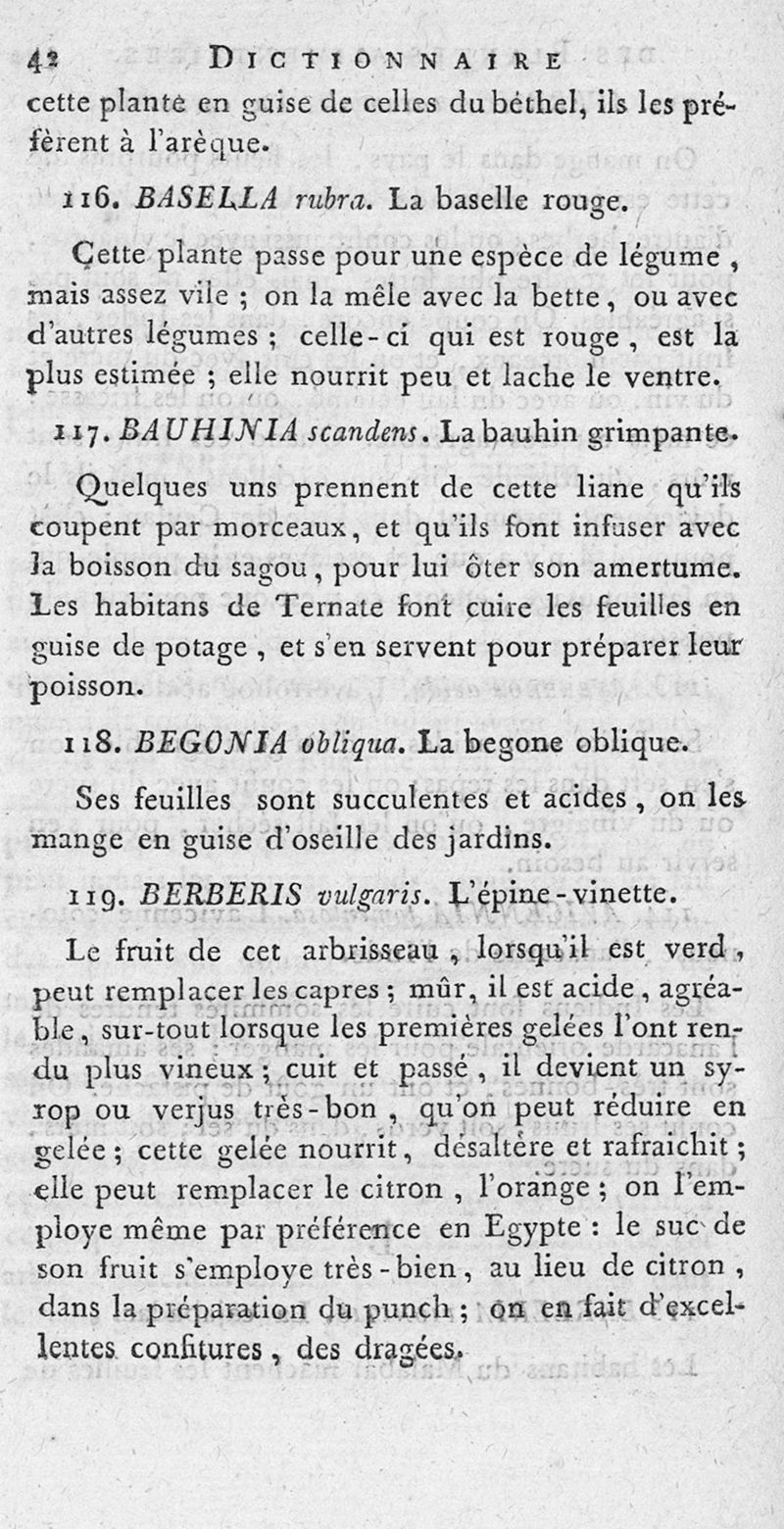 Dictionnaire des plantes alimentaires qui peuvent servir de nourriture, de boisson aux différens peuples de la terre... ou les arts du boulanger, du pâtissier, du vermicelier, du confiseur, du distillateur-liqueriste, du cuisinier, réunis dans cet ouvrage, utile aux cultivateurs et aux personnes qui habitent la campagne. Tome premier