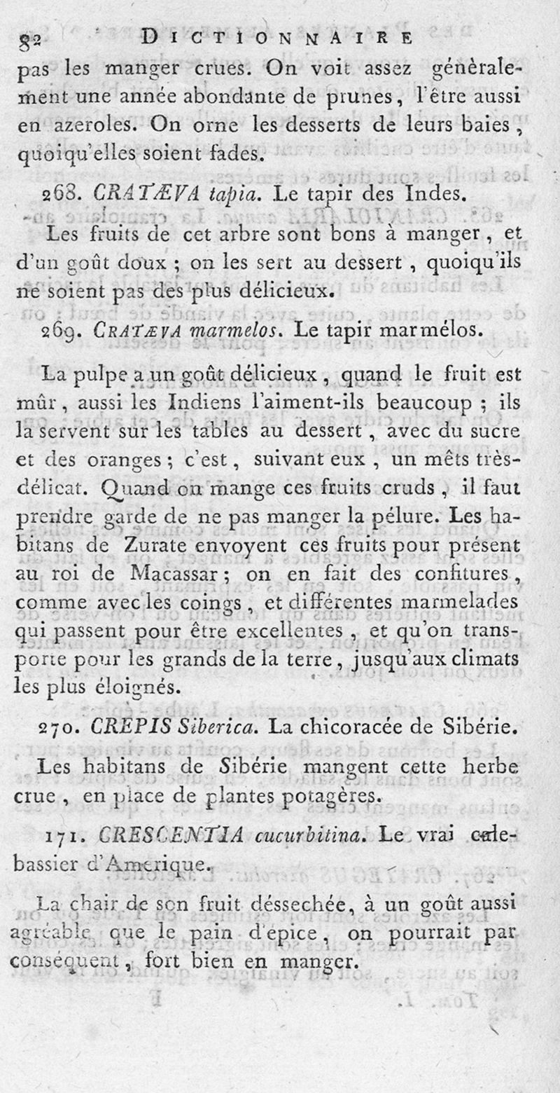 Dictionnaire des plantes alimentaires qui peuvent servir de nourriture, de boisson aux différens peuples de la terre... ou les arts du boulanger, du pâtissier, du vermicelier, du confiseur, du distillateur-liqueriste, du cuisinier, réunis dans cet ouvrage, utile aux cultivateurs et aux personnes qui habitent la campagne. Tome premier