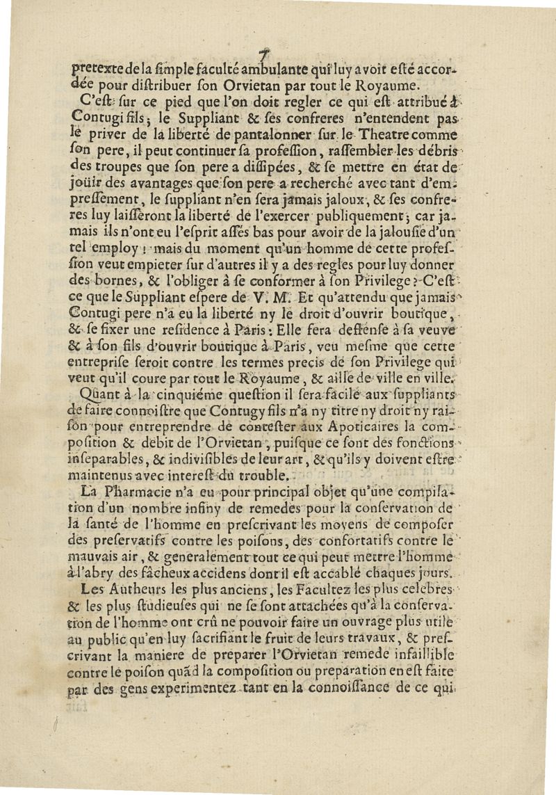 Requeste servant de factum pour Antoine Boulogne ayde-apoticaire du Corps du Roy, défendeur. Contre Roberte Richard, veuve Contugi, dit l'Orvietan, et son fils, demandeurs et défendeurs