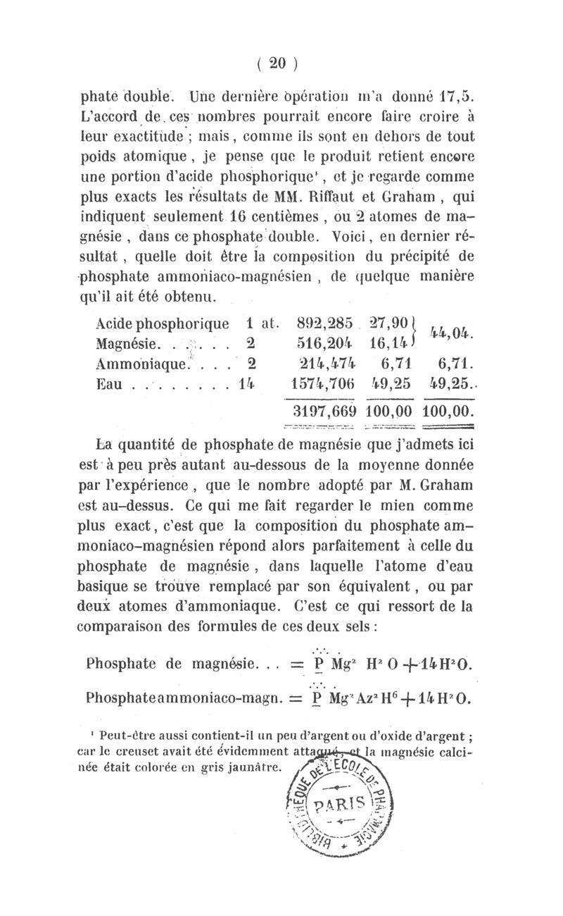 Mémoire sur le phosphate ammoniaco-magnésien
