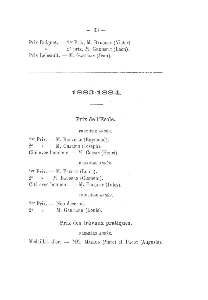 Recueil alphabétique des pharmaciens reçus à l'Ecole supérieure de Pharmacie de Paris et des prix décernés depuis 1874 jusqu'en juillet 1894