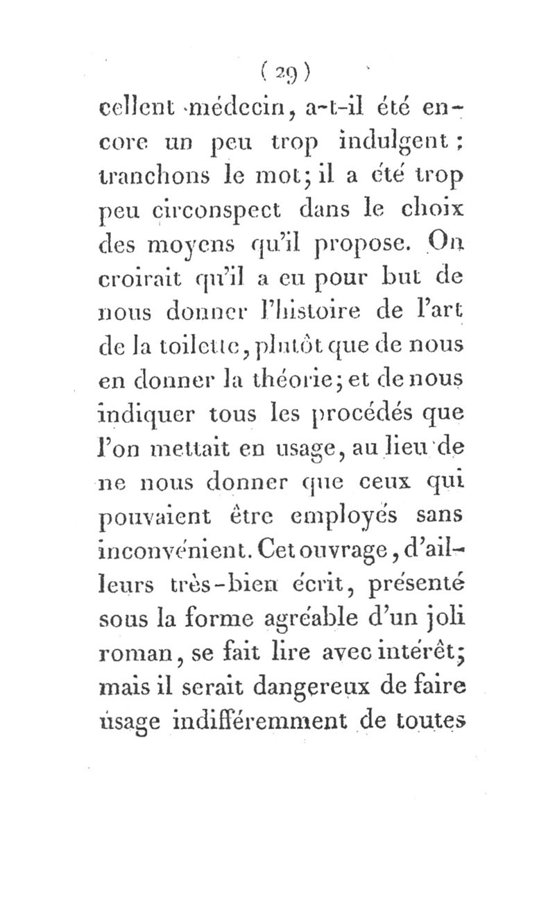Toilette des dames, ou Encyclopédie de la beauté; contenant des réflexions sur la nature de la beauté ; sur les causes physiques et morales qui l'altèrent ; sur les moyens de la conserver jusqu'à un âge avancé ; sur ce qui la constitue chez nous, et sur les soins à donner à chaque partie du corps un aperçu historique des modes françaises, et des conseils sur la toilette