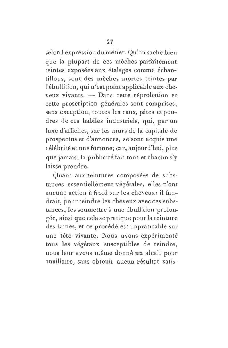L'art de teindre sans danger les cheveux et la barbe selon leur couleur et nuance primitives : formules et analyse chimique de toutes les teintures pileuses connues et secrètes : examen du procédé chinois dont il a été rendu compte à l'Institut : art d'arrêter la calvitie et de régénérer les cheveux perdus depuis long-temps, par une méthode endermo-tonique dont le lecteur appréciera l'efficacité