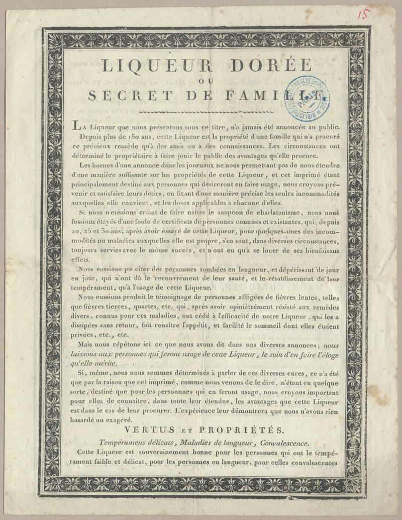 Liqueur Dorée ou Secret de famille [Prospectus médicaux et pharmaceutiques]