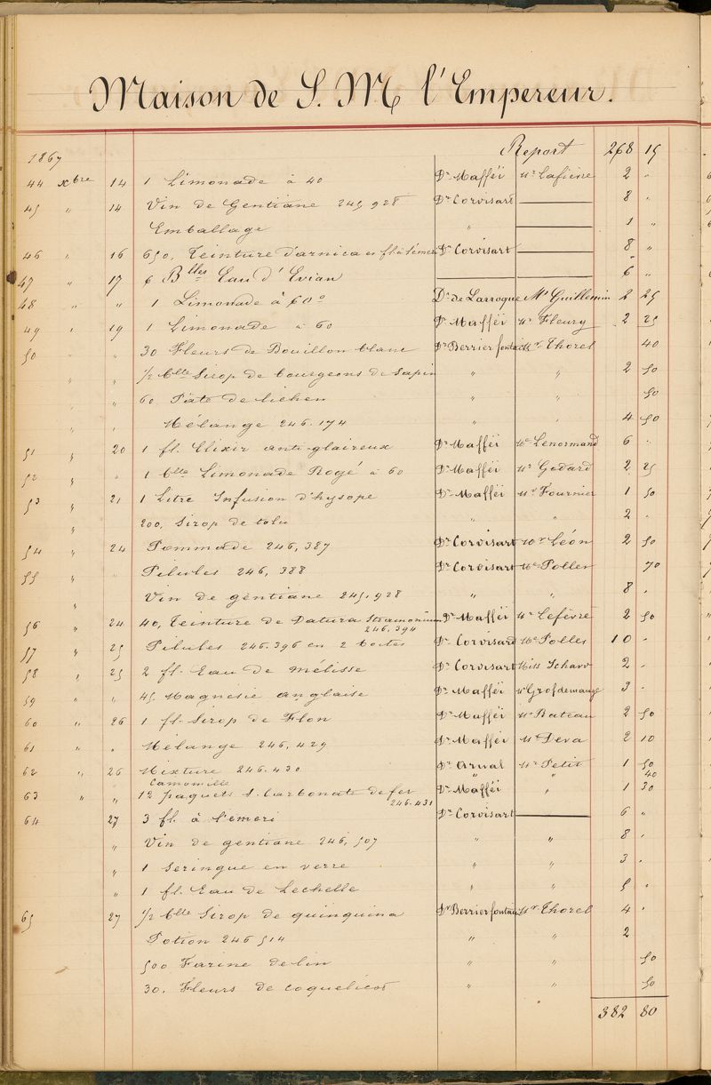 Ordonnancier de la Pharmacie du Dr Mialhe, ou Note des médicaments fournis sur l'ordre de Monsieur le Dr Conneau pour le Service de Santé de Sa Majesté l'Empereur