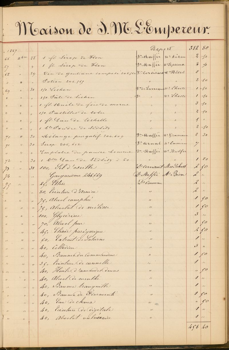 Ordonnancier de la Pharmacie du Dr Mialhe, ou Note des médicaments fournis sur l'ordre de Monsieur le Dr Conneau pour le Service de Santé de Sa Majesté l'Empereur