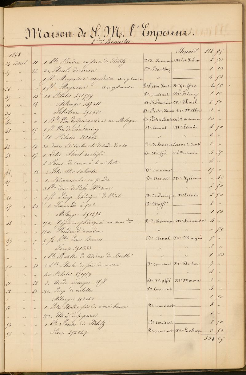 Ordonnancier de la Pharmacie du Dr Mialhe, ou Note des médicaments fournis sur l'ordre de Monsieur le Dr Conneau pour le Service de Santé de Sa Majesté l'Empereur