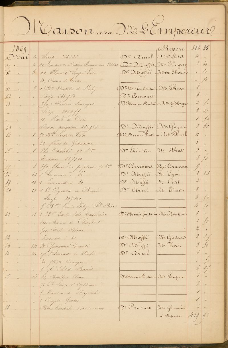 Ordonnancier de la Pharmacie du Dr Mialhe, ou Note des médicaments fournis sur l'ordre de Monsieur le Dr Conneau pour le Service de Santé de Sa Majesté l'Empereur