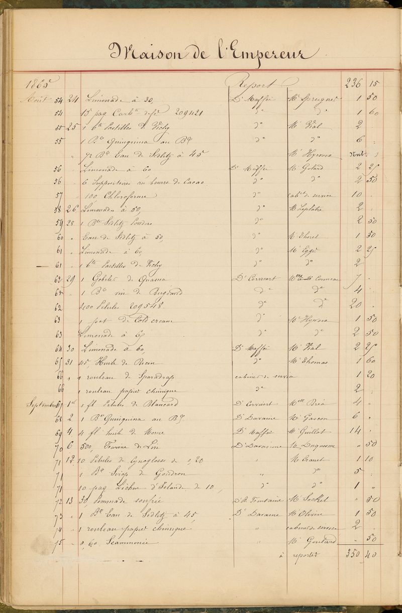 Ordonnancier de la Pharmacie du Dr Mialhe, ou Note des médicaments fournis sur l'ordre de Monsieur le Dr Conneau pour le Service de Santé de Sa Majesté l'Empereur