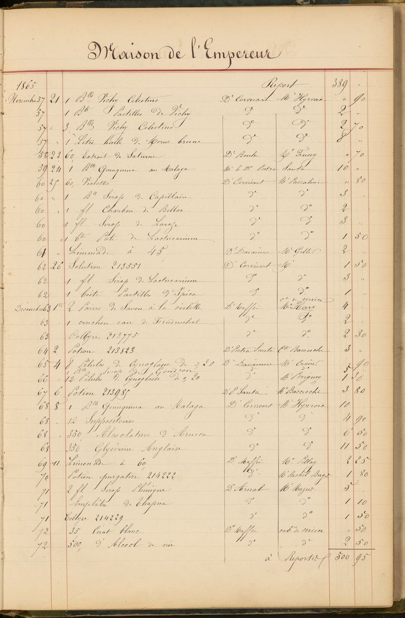 Ordonnancier de la Pharmacie du Dr Mialhe, ou Note des médicaments fournis sur l'ordre de Monsieur le Dr Conneau pour le Service de Santé de Sa Majesté l'Empereur