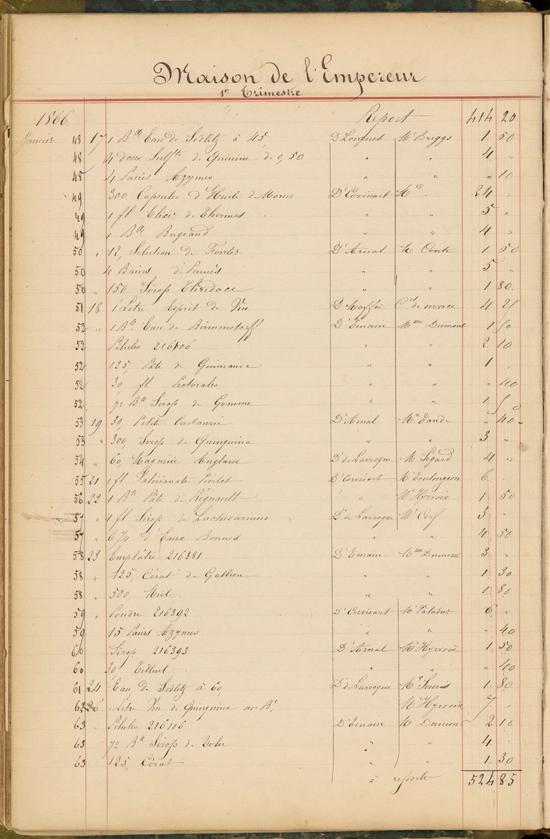 Ordonnancier de la Pharmacie du Dr Mialhe, ou Note des médicaments fournis sur l'ordre de Monsieur le Dr Conneau pour le Service de Santé de Sa Majesté l'Empereur