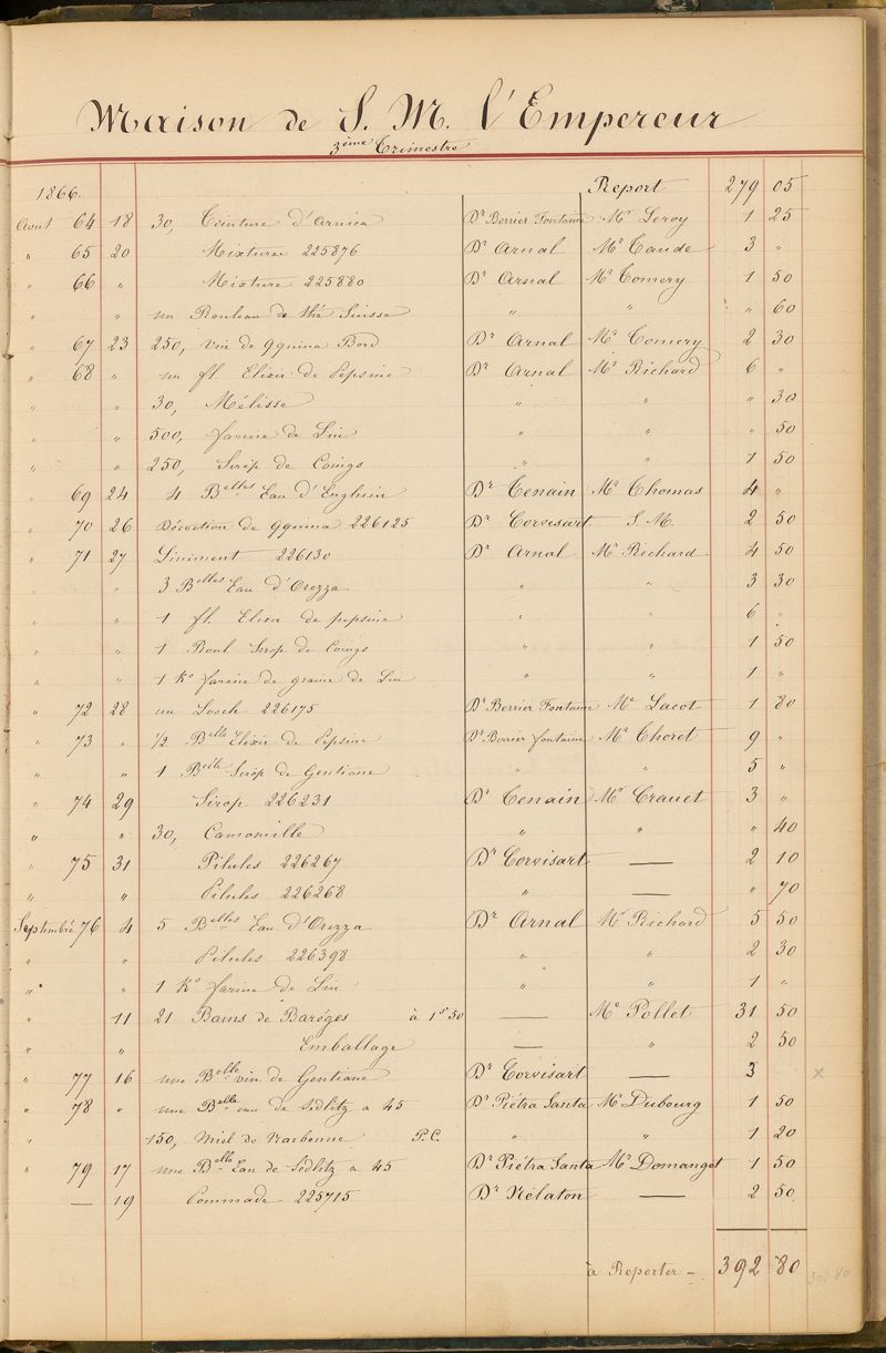 Ordonnancier de la Pharmacie du Dr Mialhe, ou Note des médicaments fournis sur l'ordre de Monsieur le Dr Conneau pour le Service de Santé de Sa Majesté l'Empereur