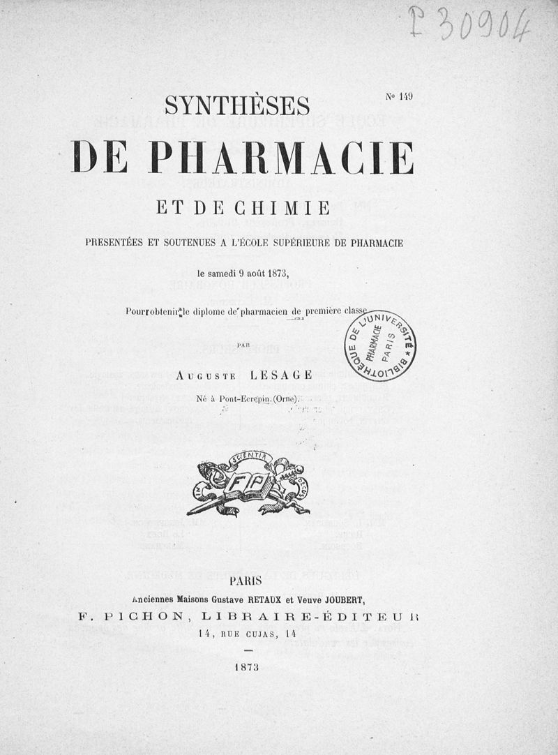 Synthèse de pharmacie de Paris ,
