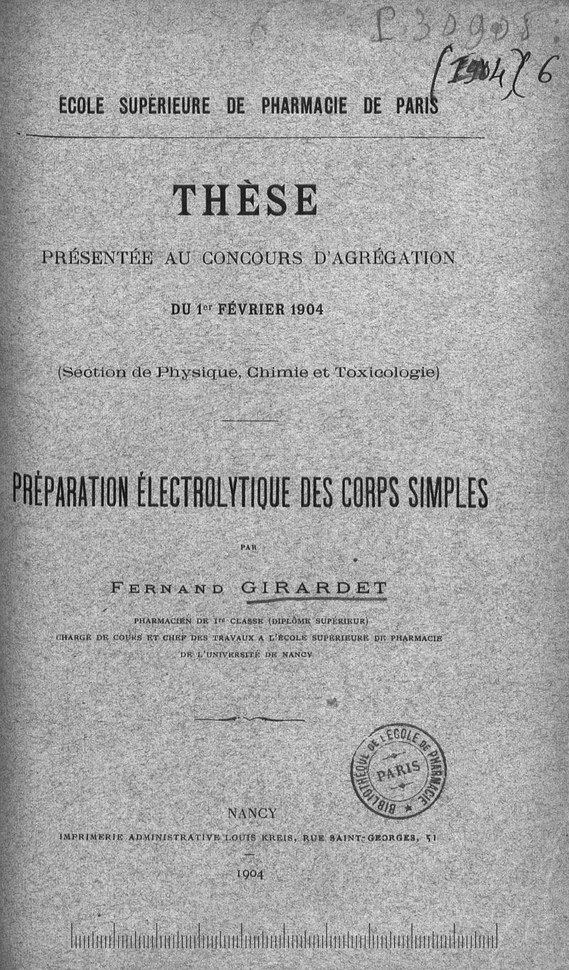 Thèse de pharmacie de Paris (agrégation),