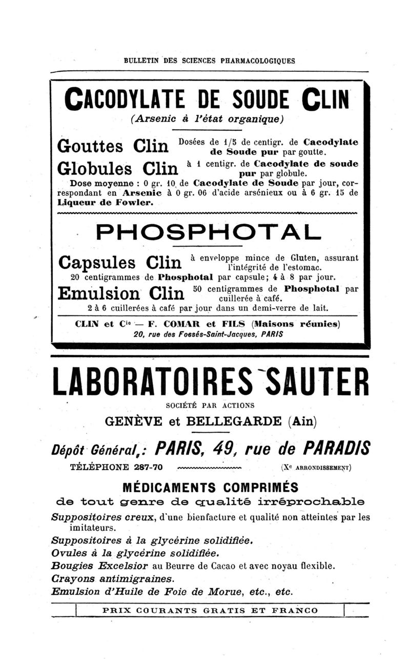 Bulletin des sciences pharmacologiques : organe scientifique et professionnel [Annexes : partie professionnelle et commerciale]