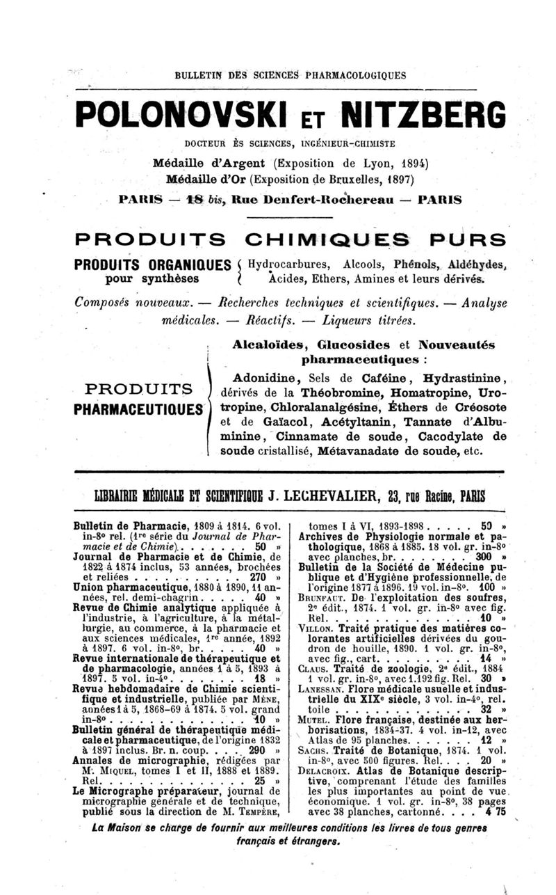Bulletin des sciences pharmacologiques : organe scientifique et professionnel [Annexes : partie professionnelle et commerciale]