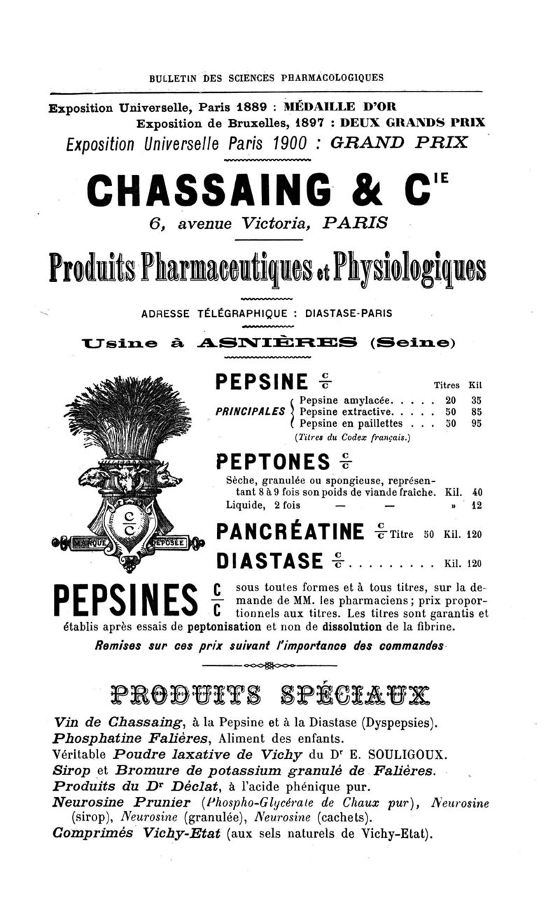 Bulletin des sciences pharmacologiques : organe scientifique et professionnel [Annexes : partie professionnelle et commerciale]