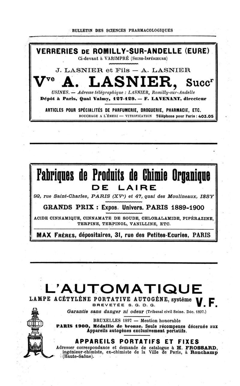 Bulletin des sciences pharmacologiques : organe scientifique et professionnel [Annexes : partie professionnelle et commerciale]