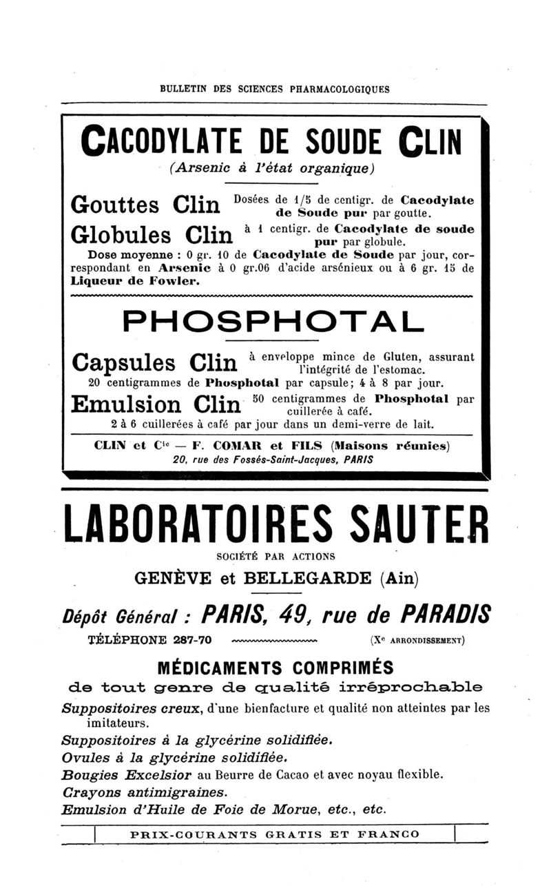 Bulletin des sciences pharmacologiques : organe scientifique et professionnel [Annexes : partie professionnelle et commerciale]