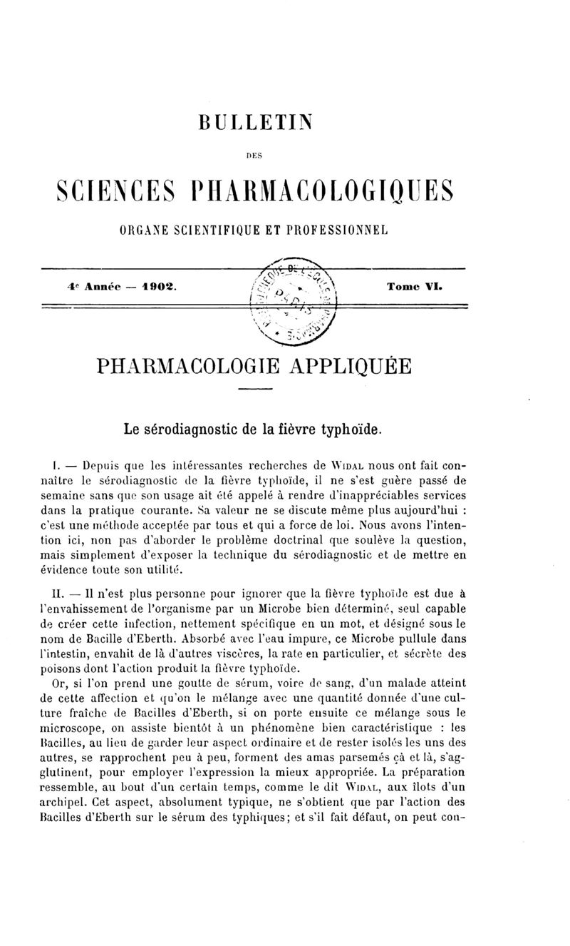 Bulletin des sciences pharmacologiques : organe scientifique et professionnel [Bulletin scientifique]