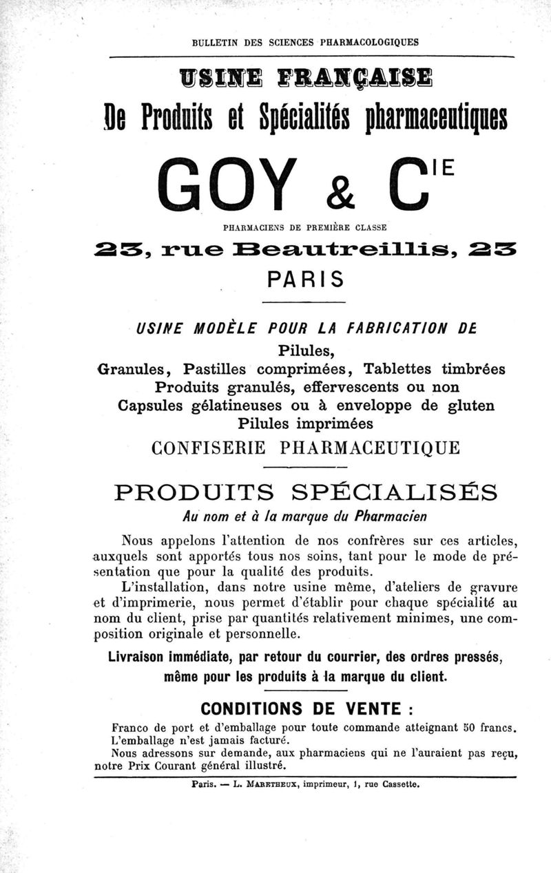 Bulletin des sciences pharmacologiques : organe scientifique et professionnel [Annexes : partie professionnelle et commerciale]