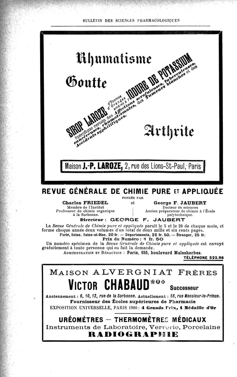 Bulletin des sciences pharmacologiques : organe scientifique et professionnel [Annexes : partie professionnelle et commerciale]