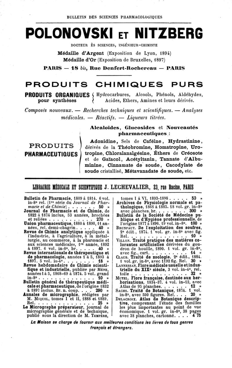 Bulletin des sciences pharmacologiques : organe scientifique et professionnel [Annexes : partie professionnelle et commerciale]