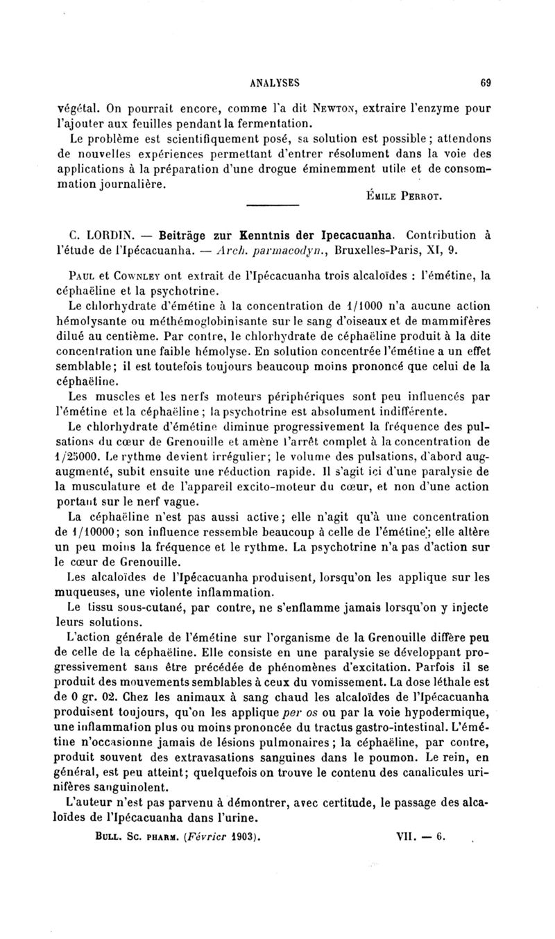 Bulletin des sciences pharmacologiques : organe scientifique et professionnel [Bulletin scientifique]