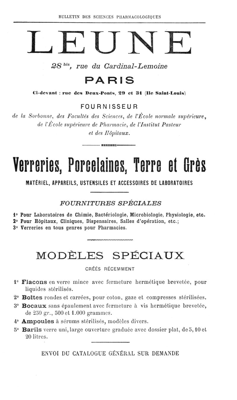 Bulletin des sciences pharmacologiques : organe scientifique et professionnel [Annexes : partie professionnelle]