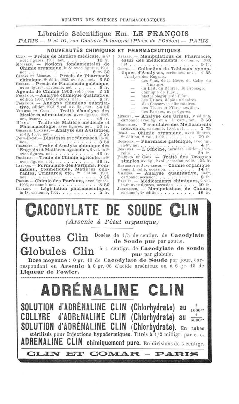 Bulletin des sciences pharmacologiques : organe scientifique et professionnel [Annexes : partie professionnelle]