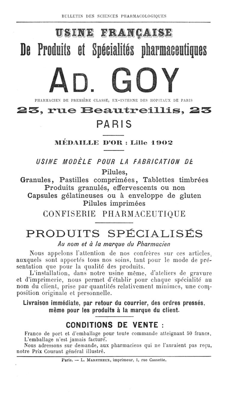 Bulletin des sciences pharmacologiques : organe scientifique et professionnel [Annexes : partie professionnelle]